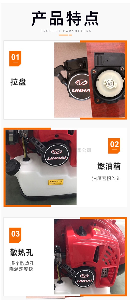 產(chǎn)品特點(diǎn):二沖程發(fā)動(dòng)機(jī)、背負(fù)式風(fēng)力滅火器、掃葉、森林滅火、現(xiàn)場(chǎng)排渣、溫室吹雪、風(fēng)力滅火、道路清潔、環(huán)衛(wèi)清潔。免費(fèi)發(fā)票,一年保修,廣泛適用,包括清掃落葉、沙子和礫石、溫室吹雪、森林消防、建筑工地除塵和排渣。有效滅火距離可達(dá)1.97M。坐墊加厚,加寬加厚,舒適舒適。散熱和通風(fēng)可防止油溫過(guò)高。多個(gè)散熱孔使散熱迅速。可拆卸風(fēng)管吹管,性能穩(wěn)定,適用性強(qiáng),啟動(dòng)方便,風(fēng)量大,風(fēng)速高,質(zhì)量可靠,油耗低,簡(jiǎn)單方便。